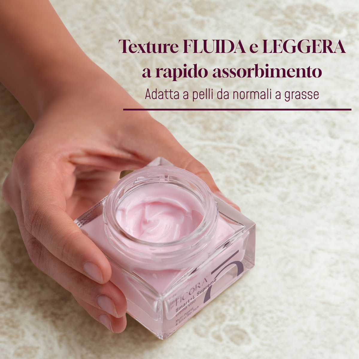 *La crema Smart+L Supreme, rispetto alla crema Smart+R Supreme, presenta una texture più leggera e bilanciata, grazie a una minore concentrazione di oli e burri vegetali, selezionati per le loro proprietà emollienti e riequilibranti senza risultare occlusivi. E' stata studiata per adattarsi anche alle pelli miste o